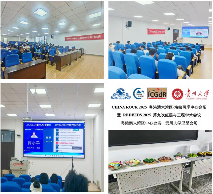 2025年10月17日至19日,CHINA ROCK 2025 第二十二次中国岩石力学与工程学术年会采用“主会场+中心会场+卫星会场”模式,主会场在雄安,粤港澳大湾区-海峡两岸中心会场暨REDBEDS 2025第九次全国红层与工程学术会议在福州召开,我院在资环楼521设置了CHINA ROCK 2025 粤港澳大湾区- 海峡两岸中心会场-贵州大学卫星会场,地质工程专业师生累计200余人次参加了本次卫星会议。