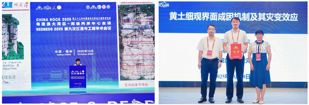 我院史文兵教授、陈世万副教授、王小明校特聘教授及硕士研究生王合龙、徐彩程参加了雄安主会场。史文兵教授在“滑坡与工程边坡:理论·技术·实践·创新”第六分会场,作了题为“降雨作用下层状反倾采动斜坡裂隙结构演化与灾变机制研究”特邀报告,并受邀为青年论坛主持人。陈世万副教授受邀为“岩溶区重大工程综合治理与锚固注浆新技术”第八分会场专题报告主持人,并作题为“岩溶区地下水污染通道精准探查及污染运移过程刻画研究”的专题报告。校特聘教授王小明在第十六分会场以题为“基于机器学习方法的水稳再生骨料透水基层材料力学性能优化设计”的分会场报告。两位硕士研究生在研究生论坛作报告。杨根兰副教授在福州参加粤港澳大湾区中心会场,在会上作了题为“赤水红层崩塌灾害分布特征及其孕灾机理研究”的专题报告,并受邀为优秀青年论坛主评人。