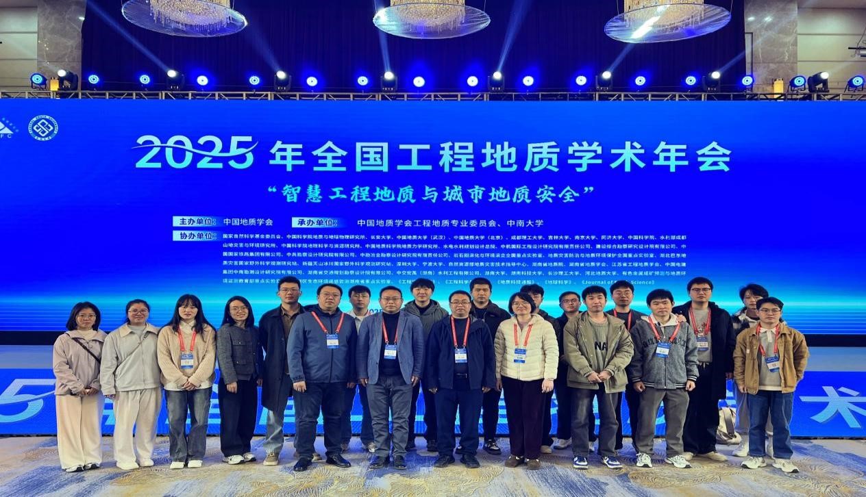 20251121日至24日,2025全国工程地质学术年会在湖南长沙盛大召开,该会议由中国地质学会主办,中国地质学会工程地质专业委员会与中南大学共同承办。中国科学院彭建兵院士、方小敏院士、崔鹏院士等嘉宾代表1800余人出席了会议,线上参会人数超过164万人次。我院共有20余名师生参加了此次会议。