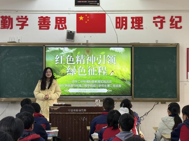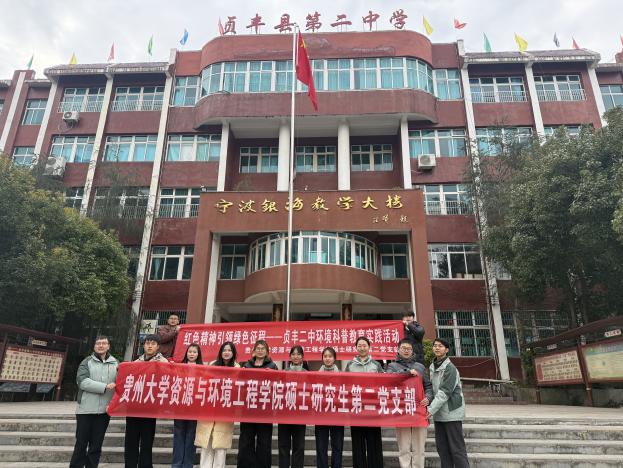 为传承红色奋斗精神,普及生态保护知识,2025年12月25日,贵州大学资源与环境工程学院硕士研究生第二党支部走进贞丰第二中学,开展“红色精神引领绿色征程”环境科普教育活动。