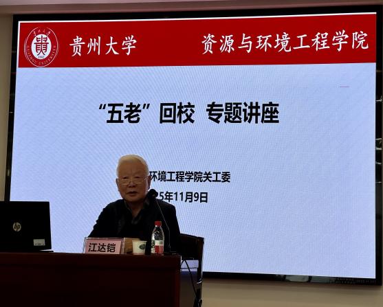 为深入学习贯彻党的二十大精神,充分发挥“五老”人员在立德树人中的重要作用,引导青年党员坚定理想信念、勇担时代使命,2025年11月9日下午3点,贵州大学资源与环境工程学院(以下简称“资环学院”)精心组织专题培训讲座,特别邀请“五老”代表、原贵州工业大学资源与环境学院党委书记、常务副院长、退休老党员江达铠教授,以“初心与使命”为主题,为学院师生作深度分享。讲座在资环学院436报告厅顺利举行,学院在读本科生、研究生、博士生及教职工中的七十余名中共预备党员齐聚现场,聆听“五老”教诲,汲取奋进力量。