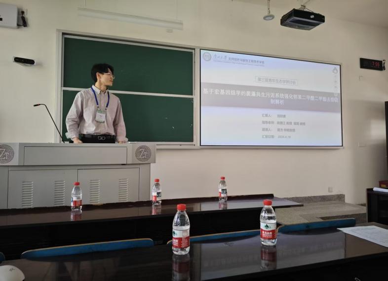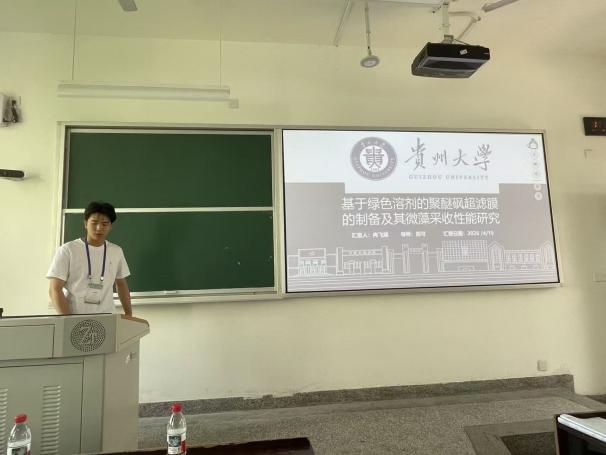 我院2023级环境工程专业本科生冉飞耀同学(指导老师:郑可)在会议的本科生创新论坛上作了题为“基于绿色溶剂的聚醚砜超滤膜的制备及其微藻采收性能研究”的学术报告。报告详细阐述了传统非溶剂致相转化法制备超滤膜需要使用有环境风险的有机溶剂的潜在危害,成功验证了绿色溶剂制备高性能分离膜的可行性,也为环境友好的膜制备技术和微藻生物质资源化采收提供了新思路。此外,由我院教师杨爱江教授和胡霞教授指导的我校北阿拉巴马国际工程技术学院环境科学专业2022级本科生刘时瑞也在该论坛上作了以为“基于宏基因组学的菌藻共生污泥系统强化邻苯二甲酸二甲酯去除机制解析”的学术报告。这两场报告内容充实、逻辑清晰,获得了与会师生的积极关注与讨论。